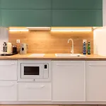 Dieses Apartment verfügt über eine Küchenzeile sowie eine Mikrowelle und einen Kühlschrank darin.